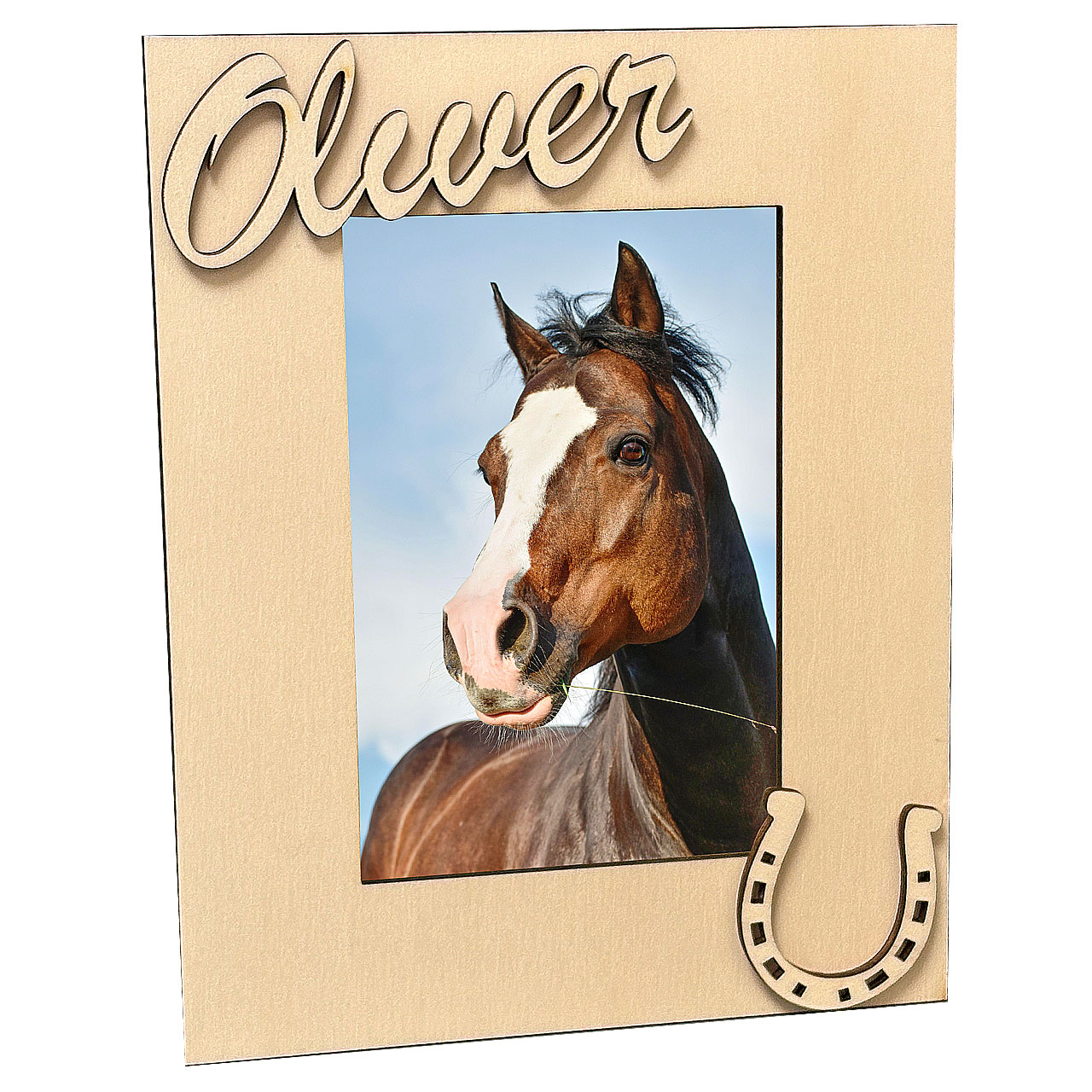 dekoratívny rámik pre milovníka koňa s menomDrevenný rámik podkovička.