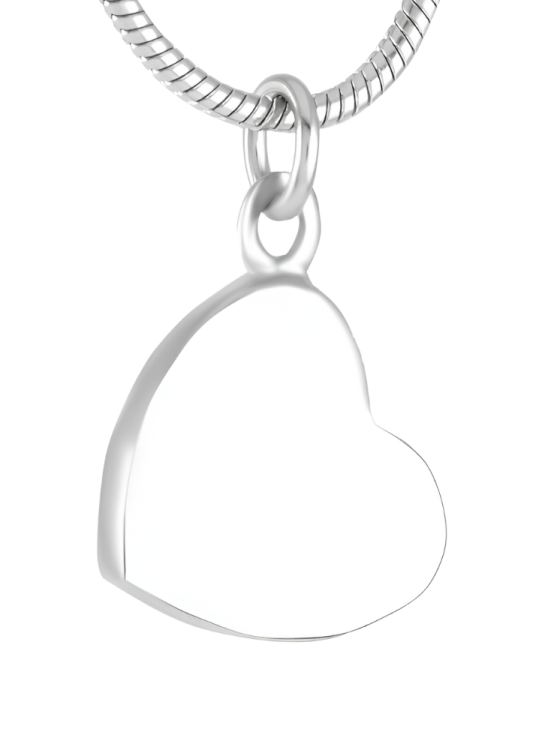 Prívesok na popol z chirurgickej ocele má tvar srdca, ktoré je v striebornom prevedení.