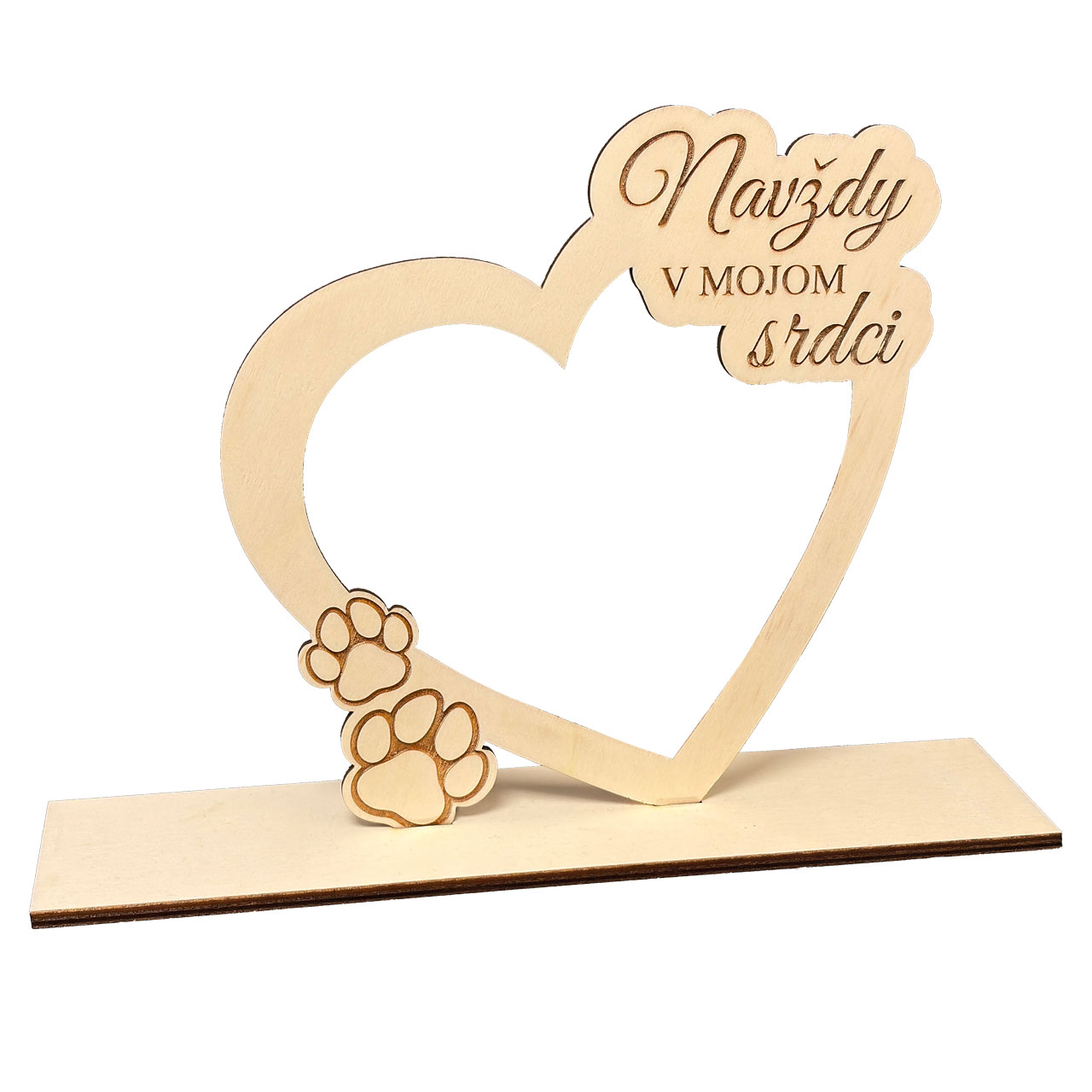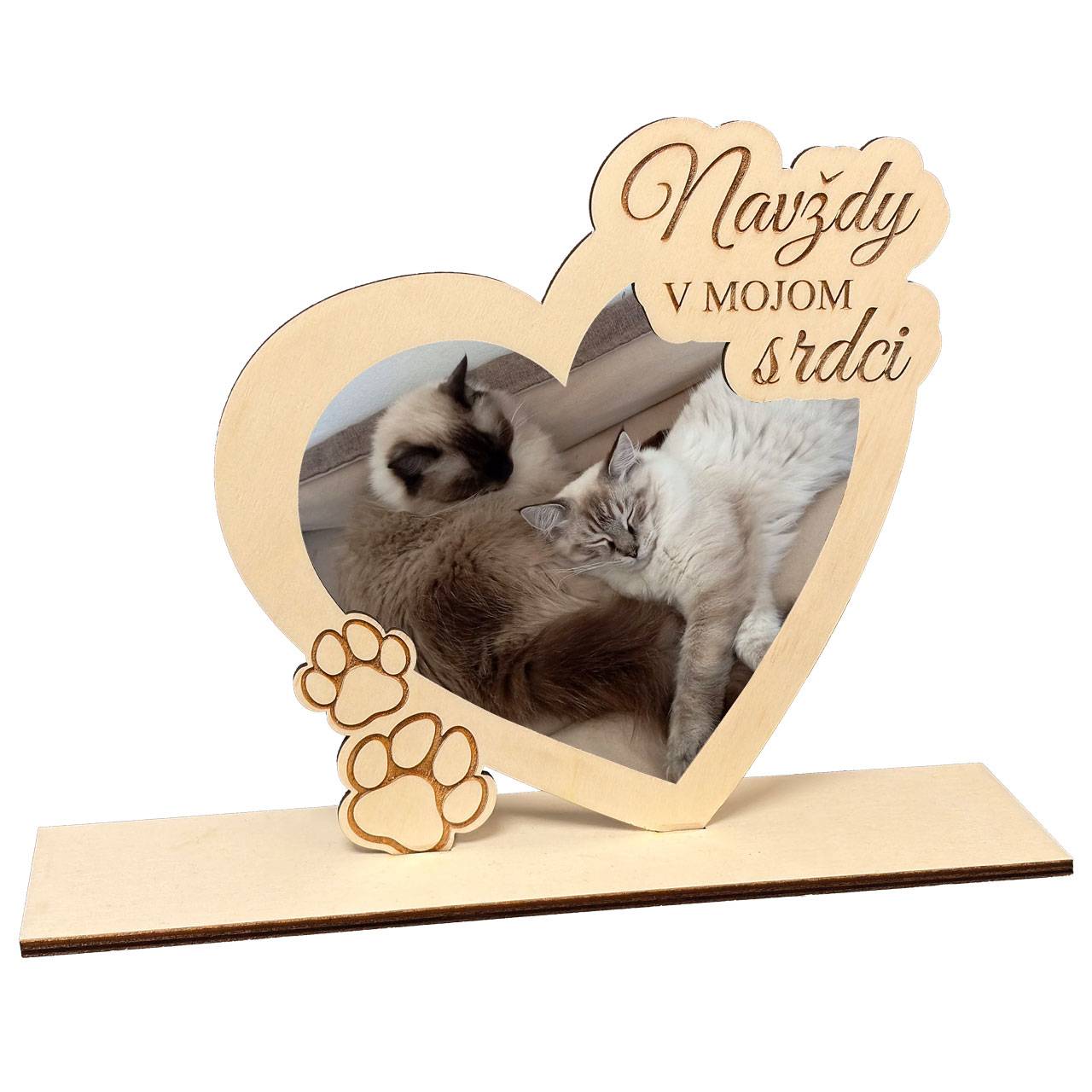 Drevenný rámik srdce s vlastnou fotkou a možnosťou vygravírovania mena na podstavec.