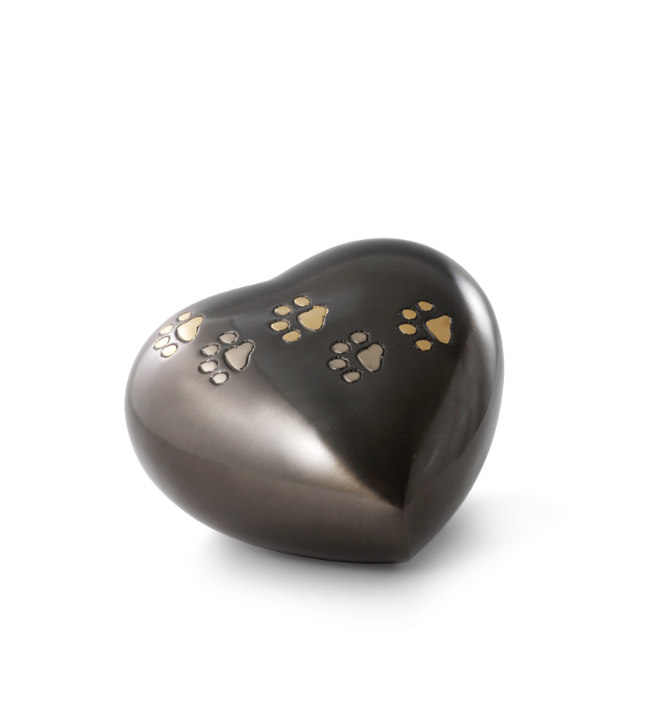 Kovová urna Skulptura má lesklý povrch v šedom prevedení a má tvar srdca, ktoré je zdobené motívom labiek. Táto urna pôsobí veľmi nezvyčajne. Urna je vhodná na popol zvieratka do 10kg.